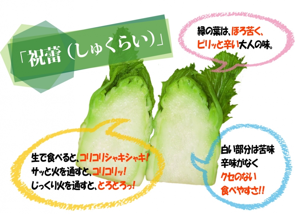 祝蕾は、味にあまりクセがないので食べやすく、様々な料理に活用していただけます。
