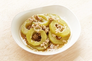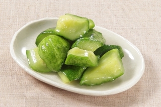 キュウリ独特のシャキッとした歯触りと、軟らかな肉質を兼ね備えています。そのため煮物や炒め物の加熱調理にも向き、熱を加えても歯ごたえのある食感が楽しめます。