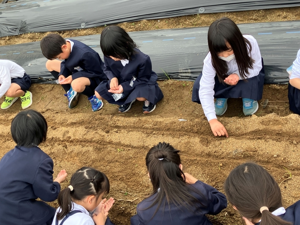 5月9日、市内の小学校で食育授業の一環として、2年生に栽培体験学習を行いました。