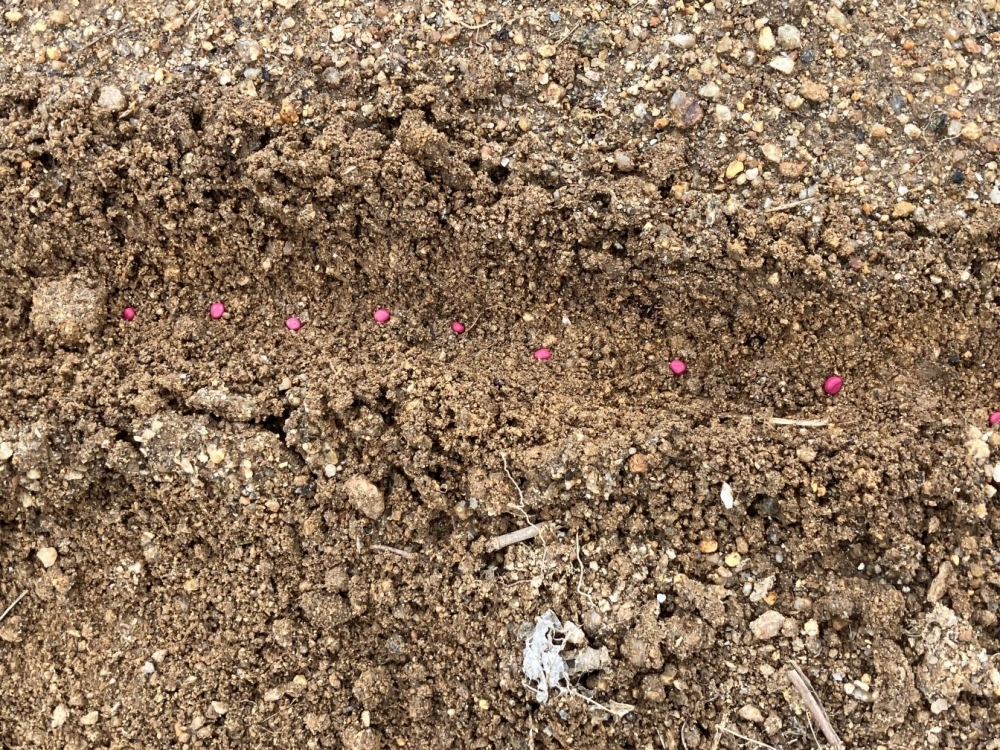 種をまく溝をつくるのには苦戦している様子でしたが、「あかゆきちゃん」の小さな種をまくのは慎重に、とても上手に並べてくれました。