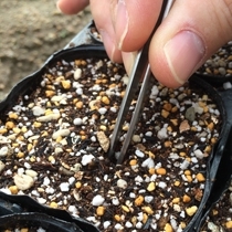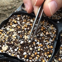 1.  種まきは浅く、土をかぶせすぎない。土の表面を見てペレット種子の白色がぎりぎり隠れる程度。