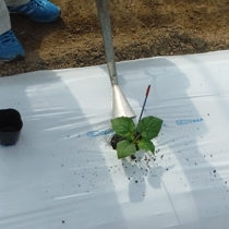 植えつけ株間を50~60cmとし、誘引用の支柱を準備します。畑の準備はナス・ピーマン等と同様に行います。夏期の乾燥を嫌いますので、梅雨明け頃からは敷きワラを用いるなどして土壌水分保持をはかります。