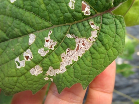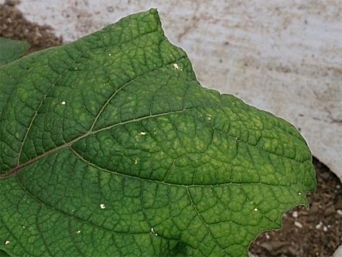 - 主に葉の裏からの食害。削られたような食害痕が特徴。